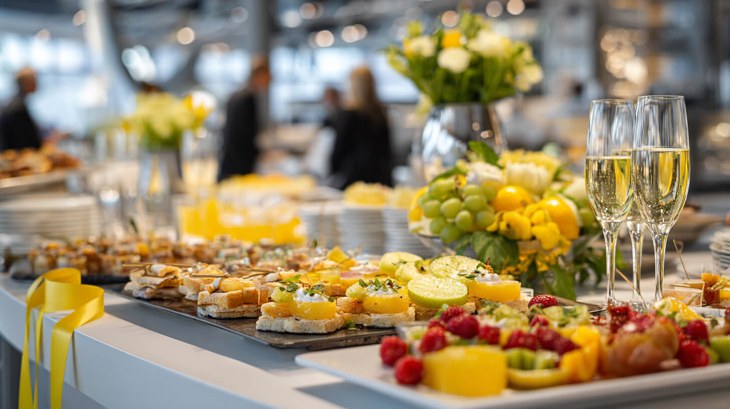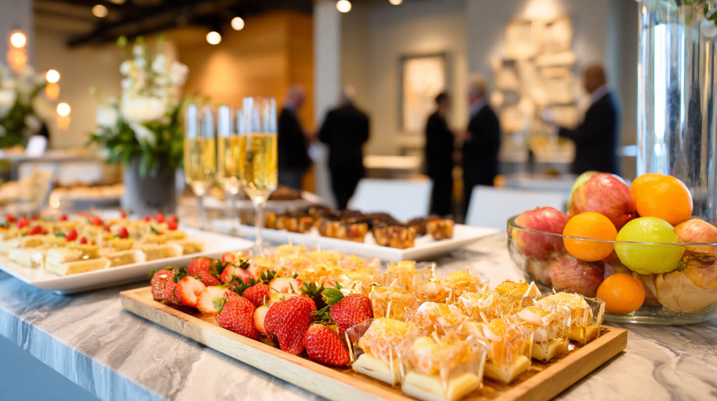 Marka imajını öne çıkarmak adına taze meyve bardakları, mini cupcake tepsileri ya da barista kahve köşesi gibi yenilikçi sunumlar tercih edebilirsiniz. Deniz ürünlü kanepe, sebzeli wrap veya glütensiz atıştırmalıklar hafiflik arayan davetlilere hitap ederken vegan seçenekler menünüzün kapsayıcılığını artırır. Böylece lezzet ile görsellik aynı anda öne çıkar.