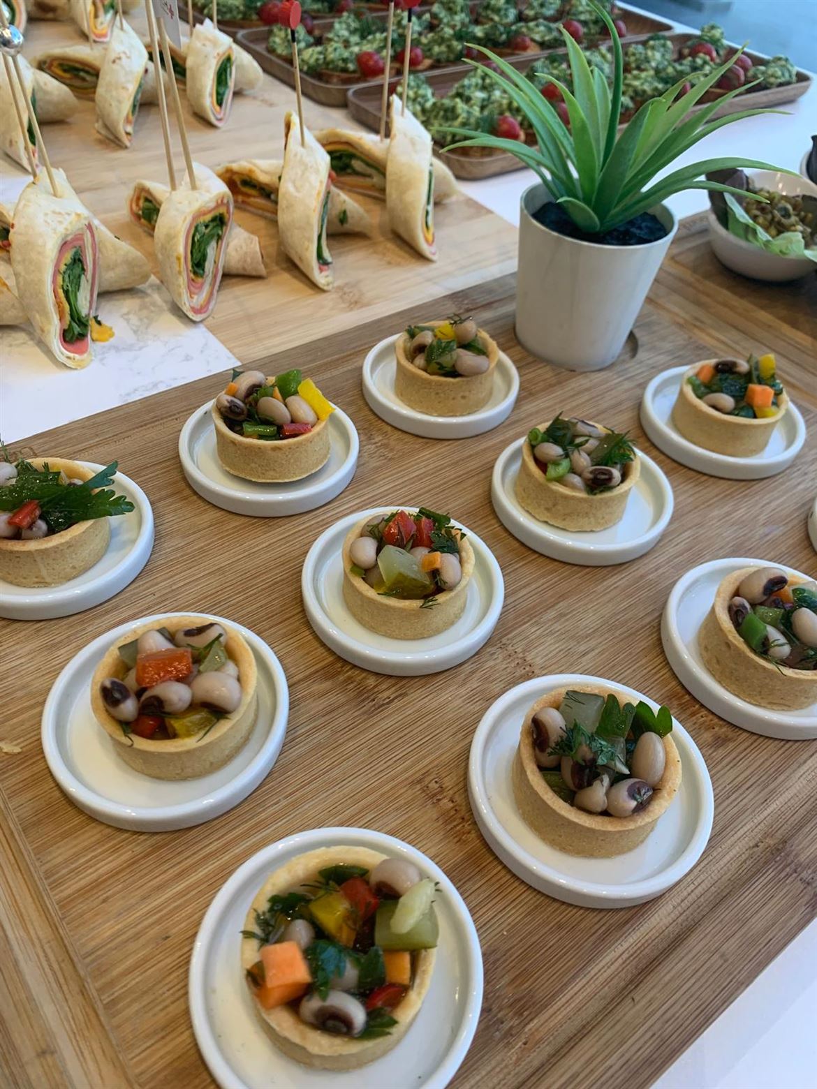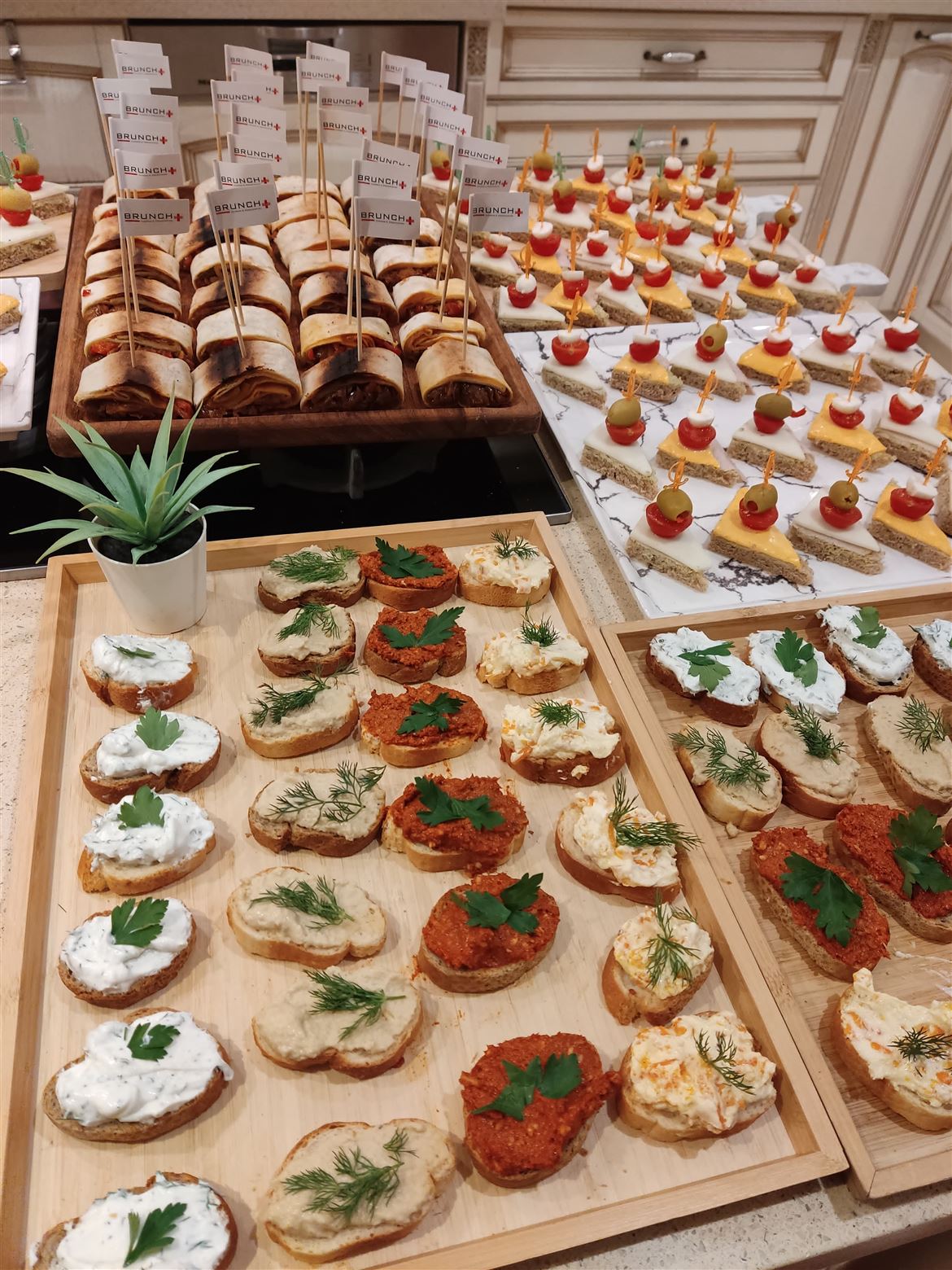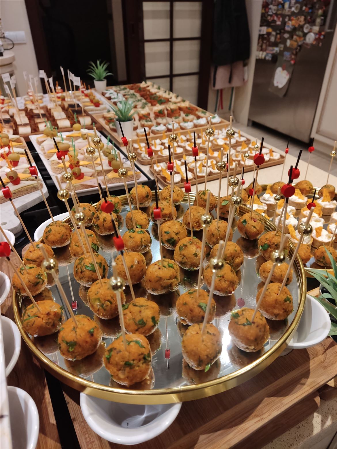 - Soğuk Kanepeler ve Ekmek Üstü Lezzetler: Somon füme, krem peynirli tartöletler, zeytin ezmeli bruschettalar ve baharatlı peynir topları menünün en renkli başlangıçlarıdır.